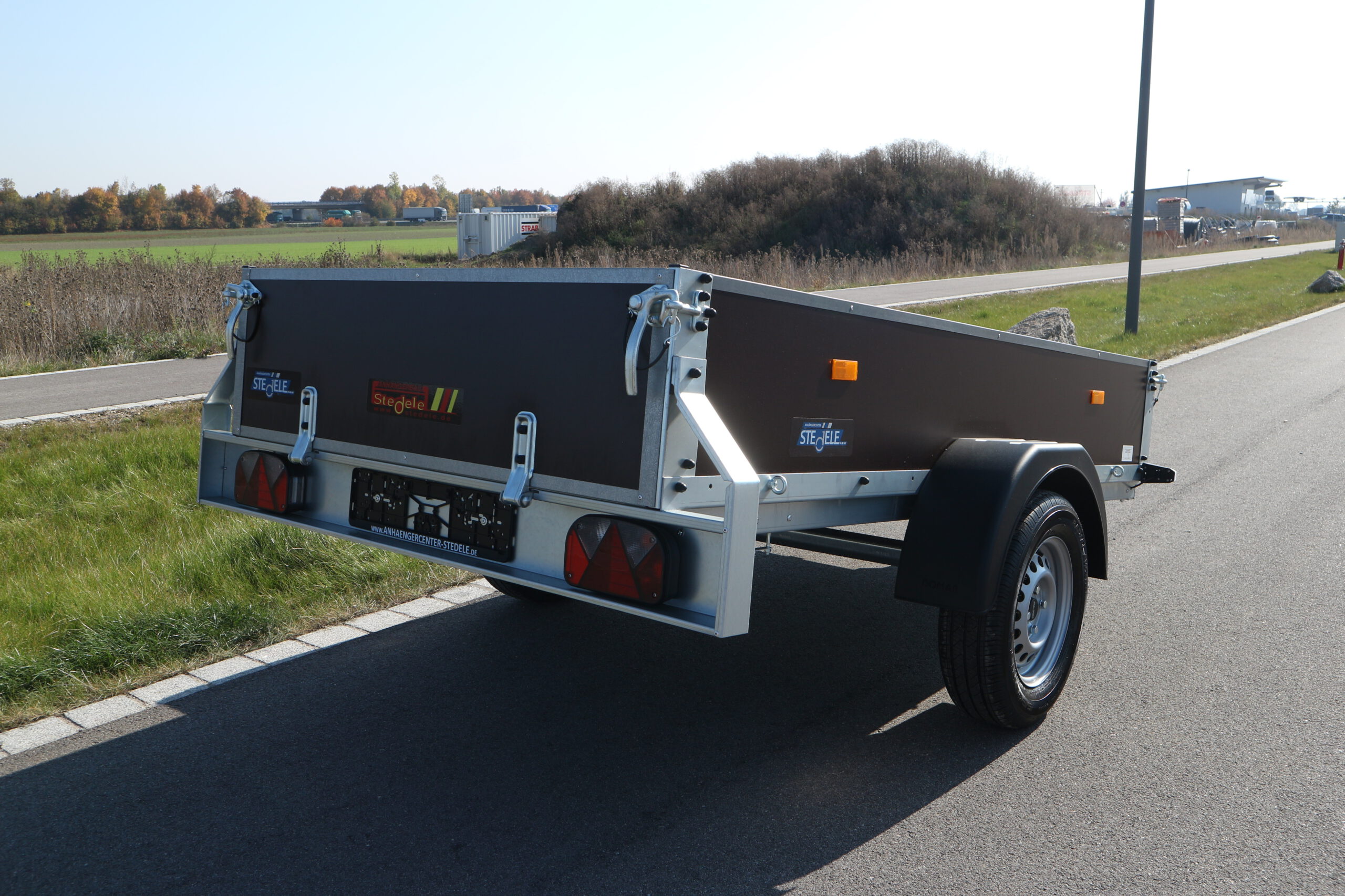 Serienmäßige Ausstattung. Stabil geschraubter Grundrahmen, komplett feuerverzinkt für mehr Stabilität in zwei Querstreben. Gummifederachse mit Einzelradaufhängung für besseren Fahrkomfort. Dickwandiges 4-Kant Zugrohr für mehr Wendigkeit beim Rangieren und ruhigen Fahrkomfort. Zugkugelkupplung mit Sicherheitsanzeige. Bodenplatte 18 mm starker, wetterfest mehrfach verleimter Siebdruckplatte, speziell rutschhemmend. Bordwände 40 cm hoch aus wetterfest verleimter Siebdruckplatte, vorne und hinten abklappbar. Handliche Winkelhebelverschlüsse mit integrierter Sicherung. Formschöne und flexible Kunststoff-Kotflügel. Seitliche Bordwandabstützung hinten. Großdimensionierte Sicherheitsbeleuchtung geschützt im Leuchtenträger integriert mit 13-poligen Stecker und Rückfahrscheinwerfer. Ladungssicherungssystem: . 10 Zurrpunkte zur Ladungssicherung: 6 Zurrbügel innen. 4 Ringschrauben außen.
